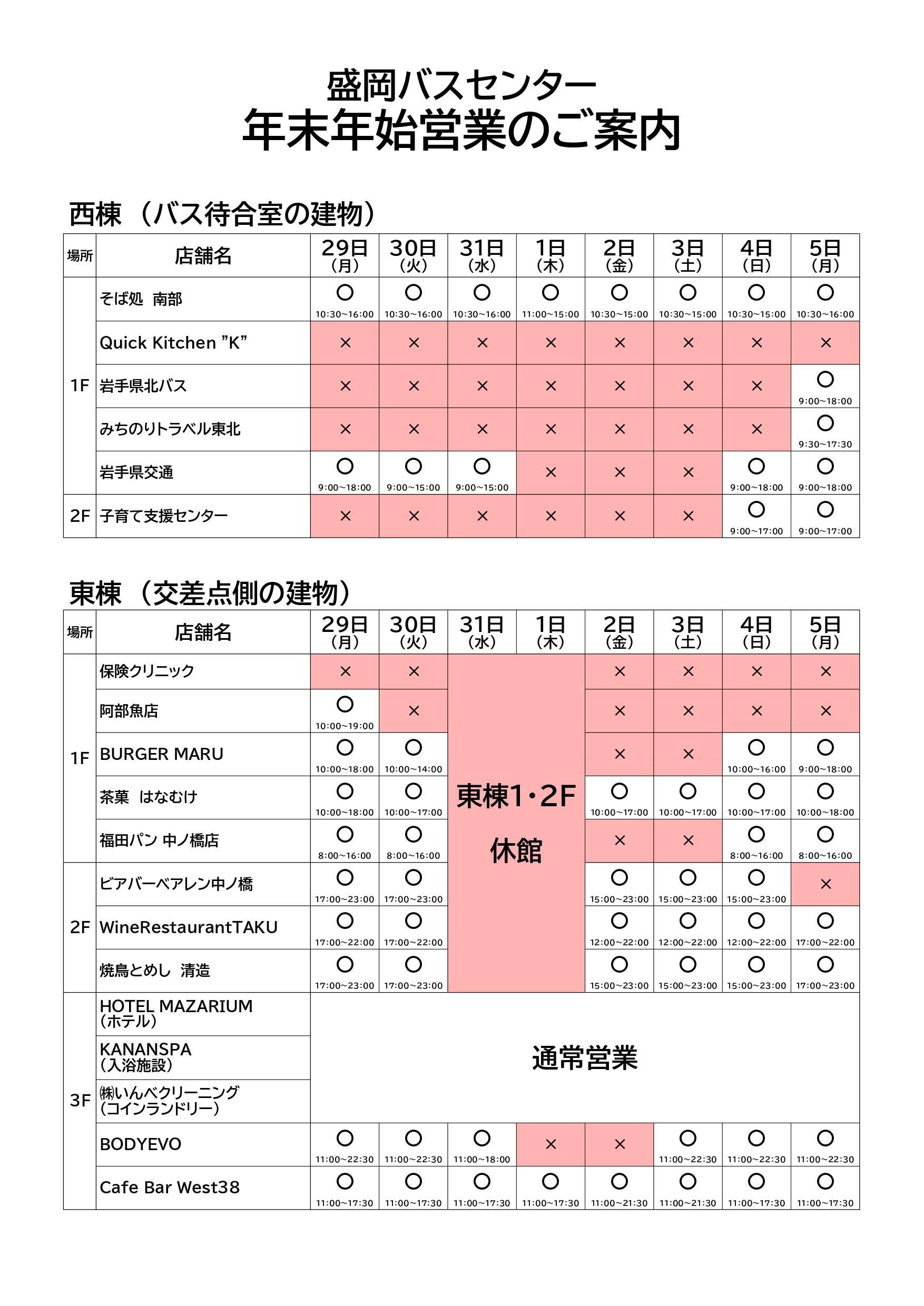 <最寄りバス停> 盛岡バスセンター / 盛岡バスセンター(モナカ前) / 盛岡バスセンター(神明町)