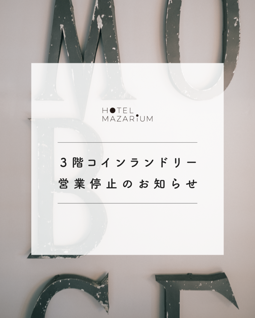 このたび、3階ホテルフロアに設置されておりましたランドリーコーナーにつきまして、