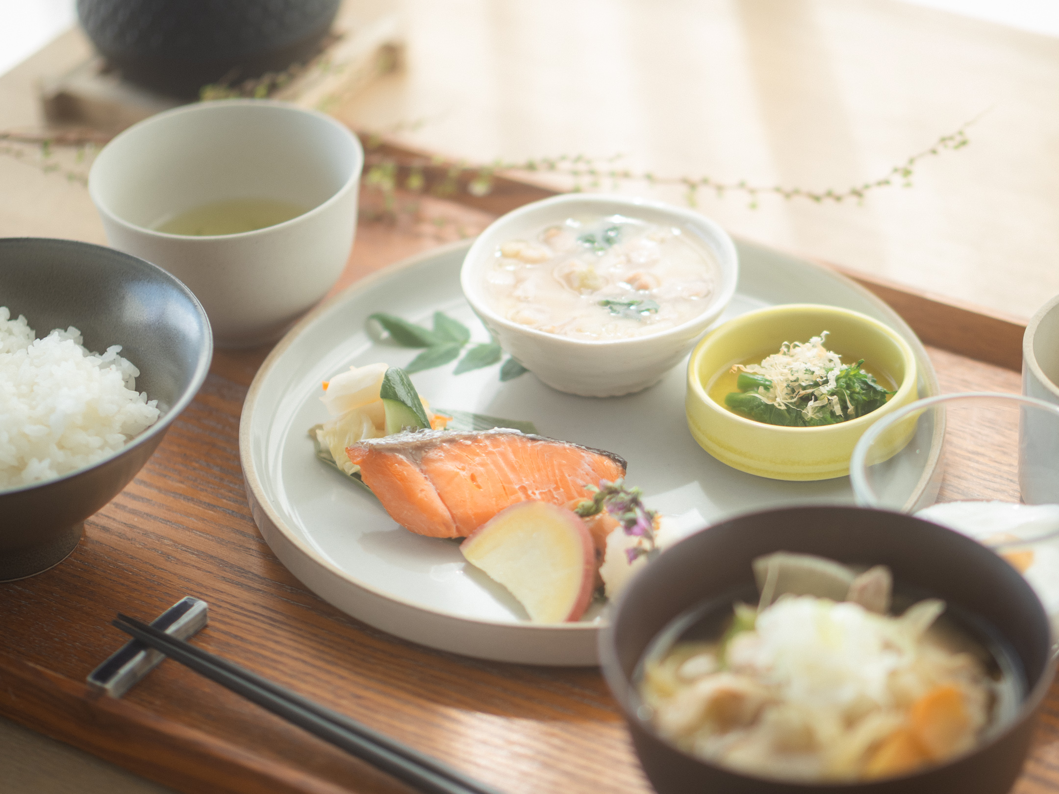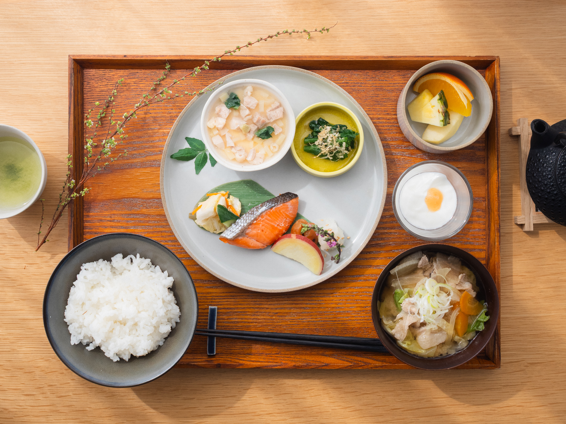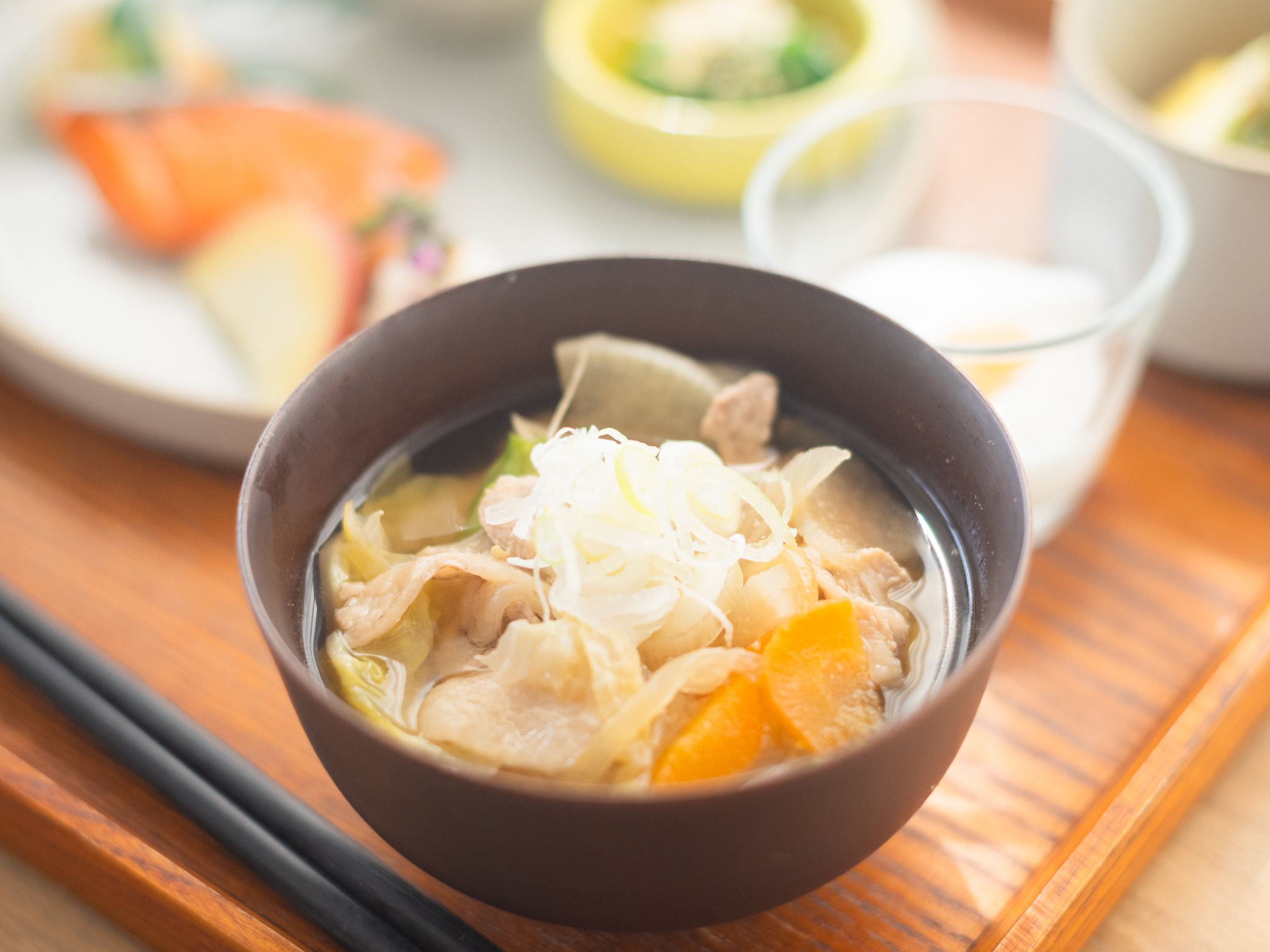 味噌の旨みがやさしく広がる具沢山の豚汁が、静かに体を目覚めさせます。